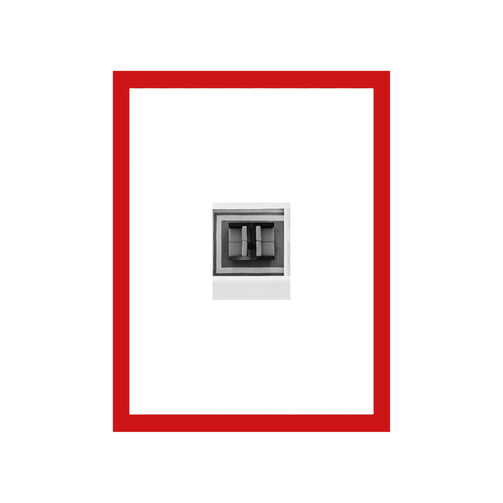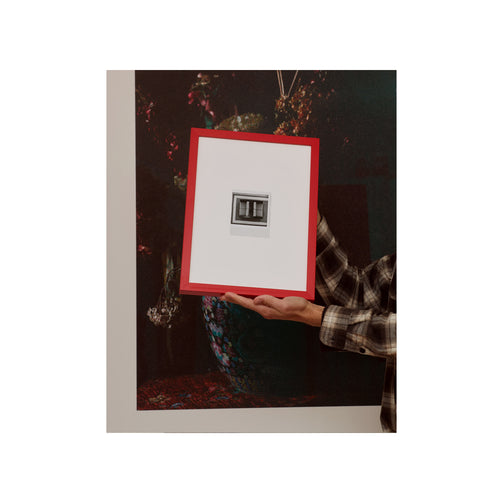 300x400mm inkjet Untitled (Manifold) print framed within bright red IKEA Rödalm frame with custom non-reflective UV museum glass and conservation-grade passepartout.